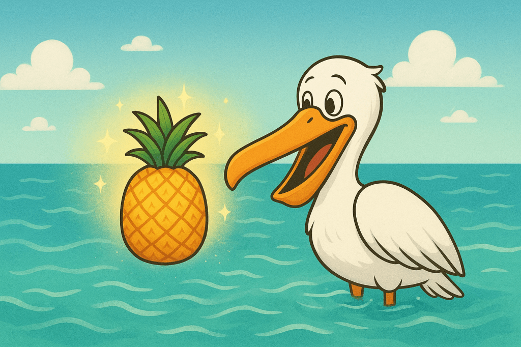 Un jour le pélican allait chercher du poisson au fond de la mer et il trouva un ananas . cet ananas n’était pas comme les autres . Le pélican remonta à la surface et il coupa l’ananas en deux . Tout à coup, une lumière sortit de l’ananas. Le pélican pris sous le choc ramassa tout doucement l’ananas et une voix retentit : tu m’as trouvé et maintenant je suis á ton service . Le pélican tout joyeux raconta tout à son ami Sébastien.